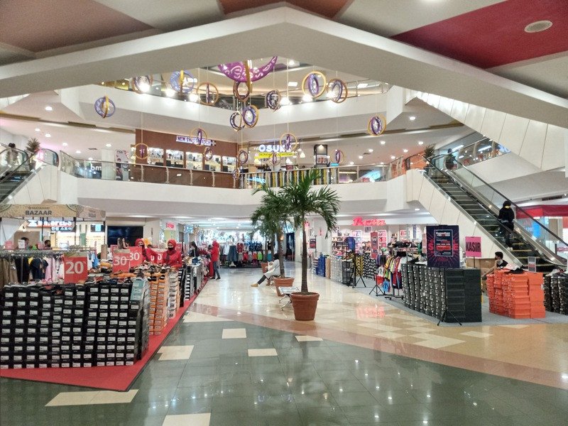 Mal yang terdiri dari tiga lantai itu, pada lantai satu dipenuhi oleh berbagai macam bazar yang menjual barang kebutuhan seperti pakaian, sepatu, dan makanan. Terlihat beberapa pengunjung yang berada di lantai satu mendatangi pameran-pameran tersebut.